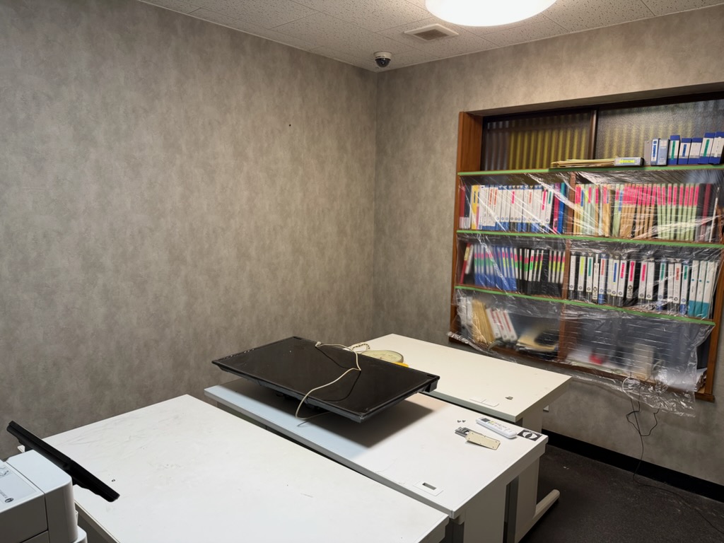 お休みの間に事務所のクロス張り替えました!!約20年以上そのままだったのでかなり汚かったです・・・・。